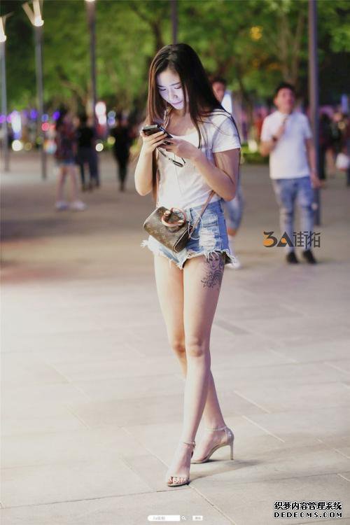 街头美女:热裤展示美女大腿长,性感的衣服看