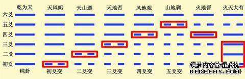 易经共有64个锣,每个锣由6个锣组成。就像盖房子一样,下蹲顺序是从下到上,依次是第一,第二,第三和第四。